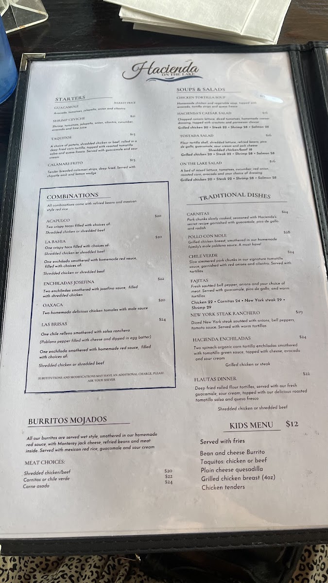 Hacienda On The Lake Menu